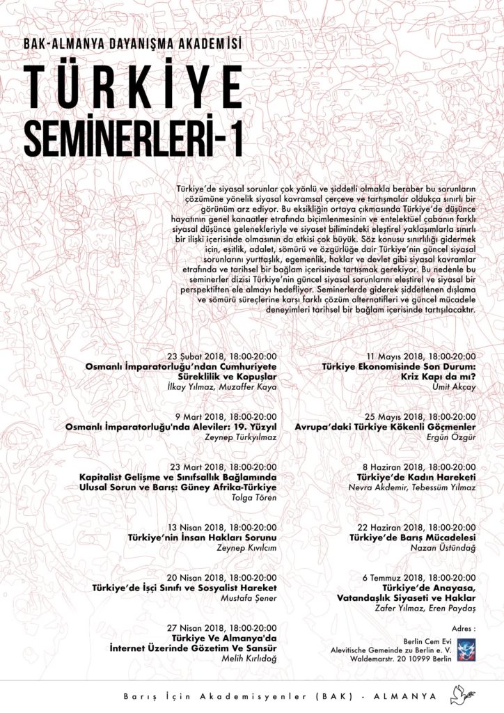 BAK-Almanya Dayanışma Akademisi Başlıyor! Post published:15/02/2018 Post category:Announcements / Seminar Read more articles Previous PostCall for Solidarity for Academics for Peace trials, December 26, 2017 Next PostPraxis of Critical Psychology in Germany and Turkey